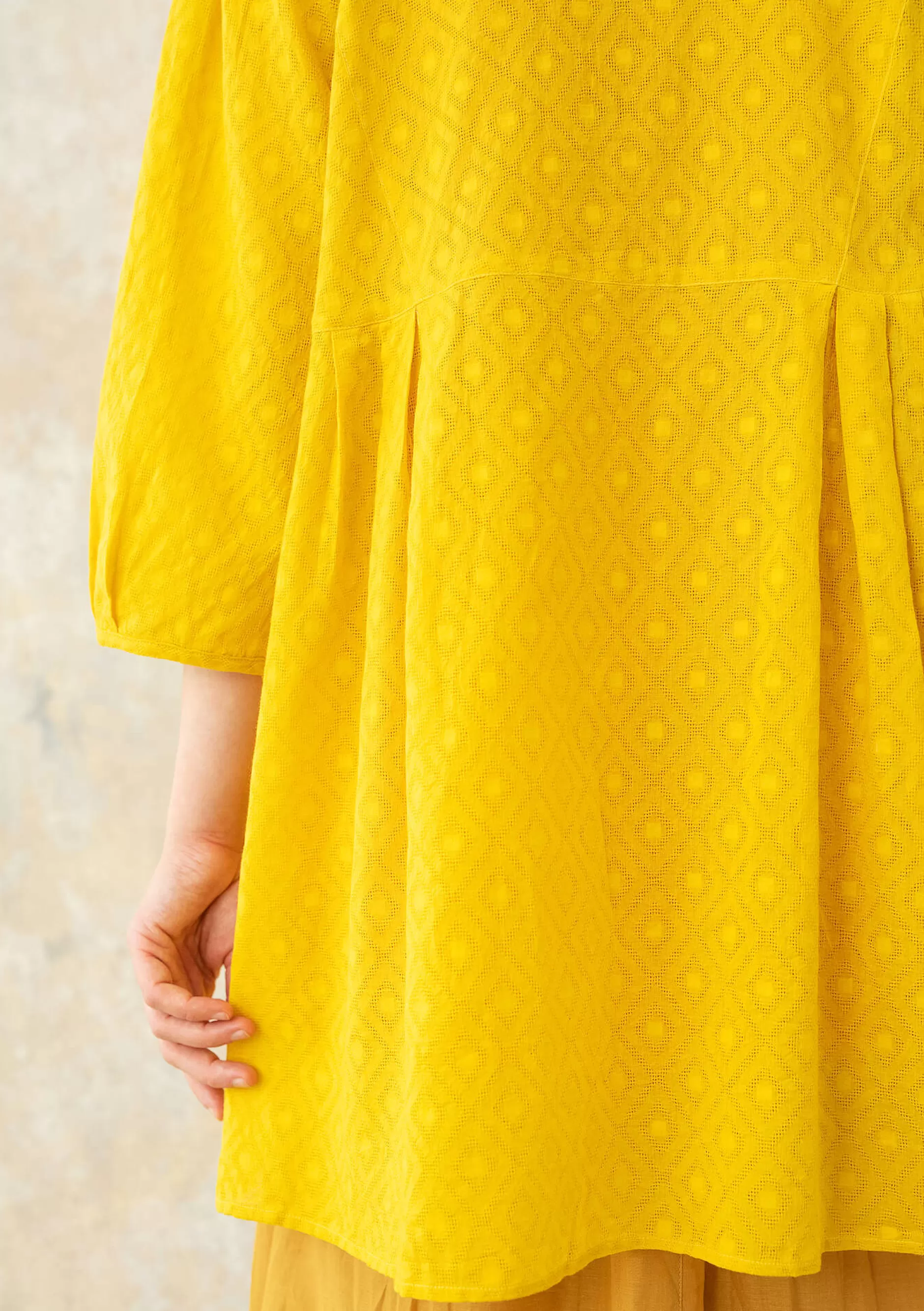 ananas S,M,L,XL,XXL,XS|Künstlerbluse mit softem V-Ausschnitt und 3/4-Ärmeln. Hübsch geformte Passe oben. Pludrige Ärmel dank gelegter Falten an Schultern und Abschlüssen. Durchgehende Knopfleiste und aufgesetzte Taschen vorne. Schönes Webmuster dank Dobby-Technik.||