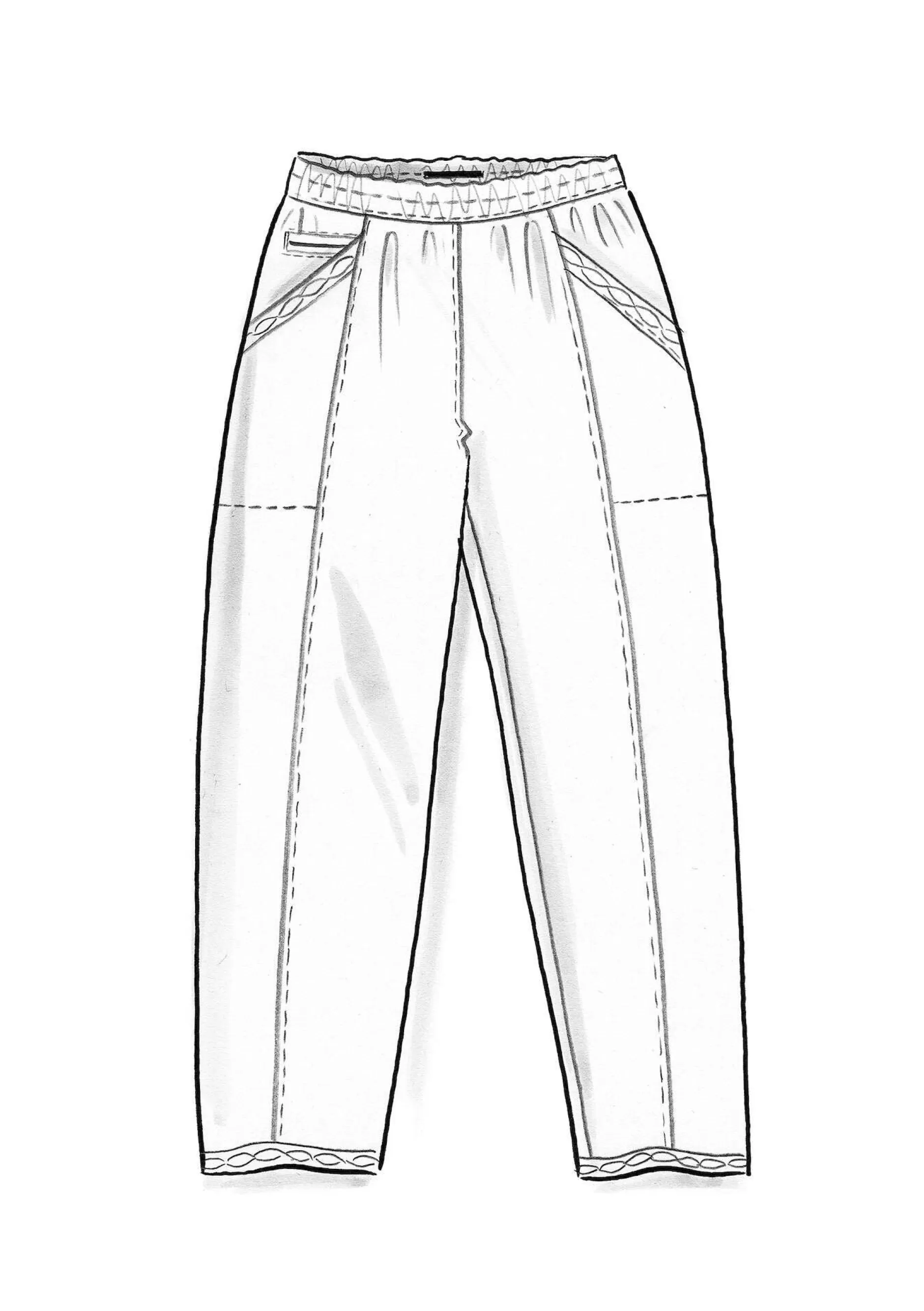 brombeere S,M,L,XL,XXL|Knöchellange Hose aus wunderbar in der Farbe changierendem Chambray. Modell mit Dehnbund, Münztasche und Stickereien an Taschen und Saum.||