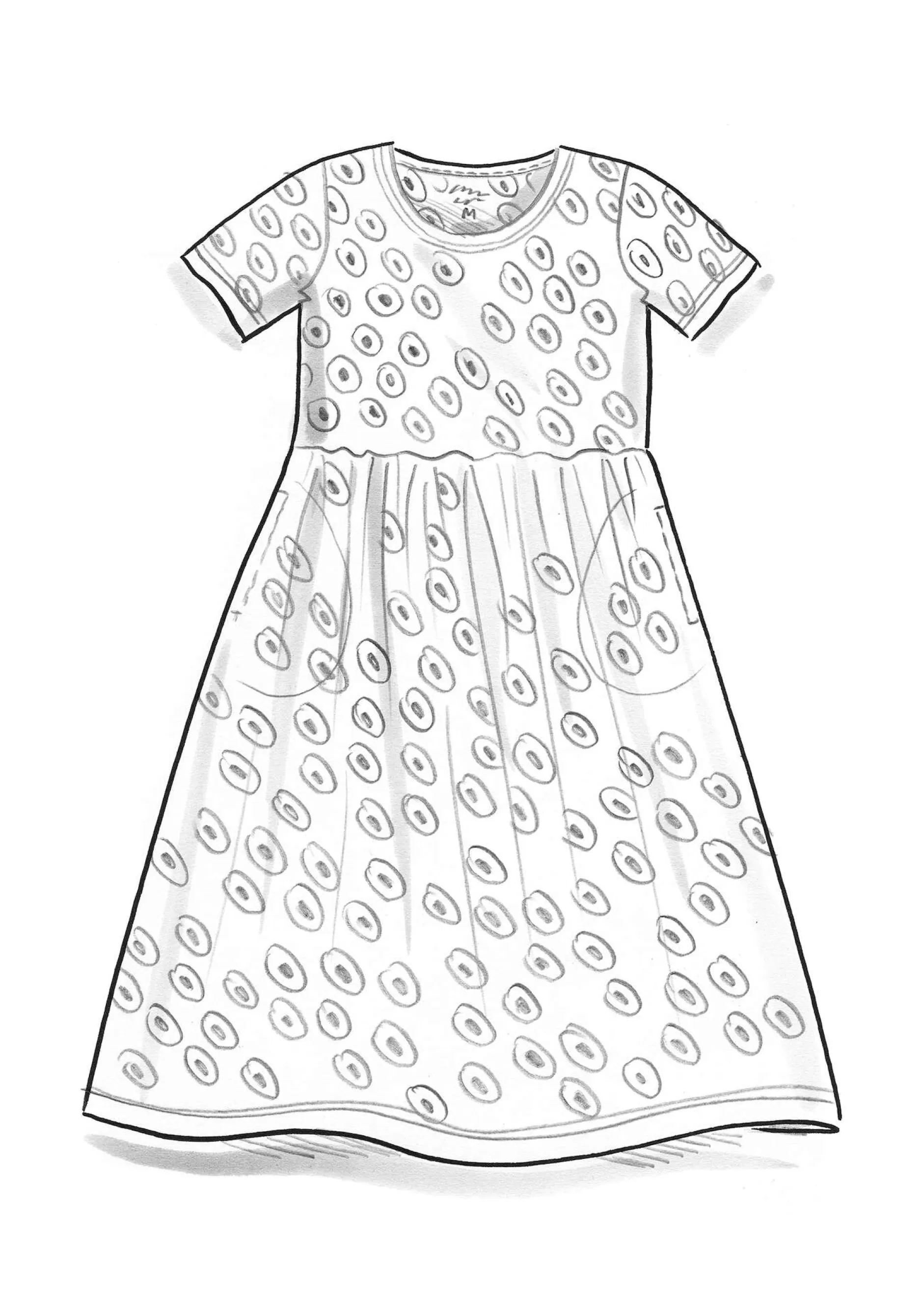 dunkelindigo-gemustert S,M,L,XL,XXL|Kurzarmkleid mit schöner Rockweite. Runder Ausschnitt und praktische seitliche Taschen. Modell mit Teilungsnaht in der Taille und leicht angekräuseltem Rock. Sowohl mit Punktedruck als auch einfarbig zu haben.||