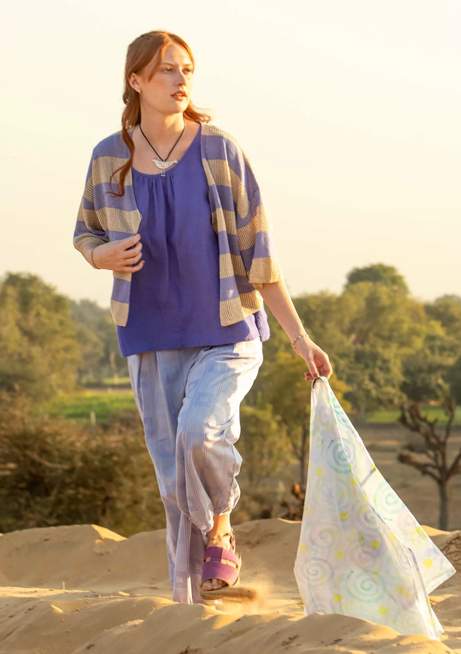 S,M,L,XL|Strickjacke aus einer schönen Leinenqualität mit Glattstrick- und Pointelle-Streifen. Gerade geschnittenes Modell mit überschnittenen Schultern und 3/4-Ärmeln. Vorne mit einem Perlmuttknopf und Häkelöse zu schließen.||
