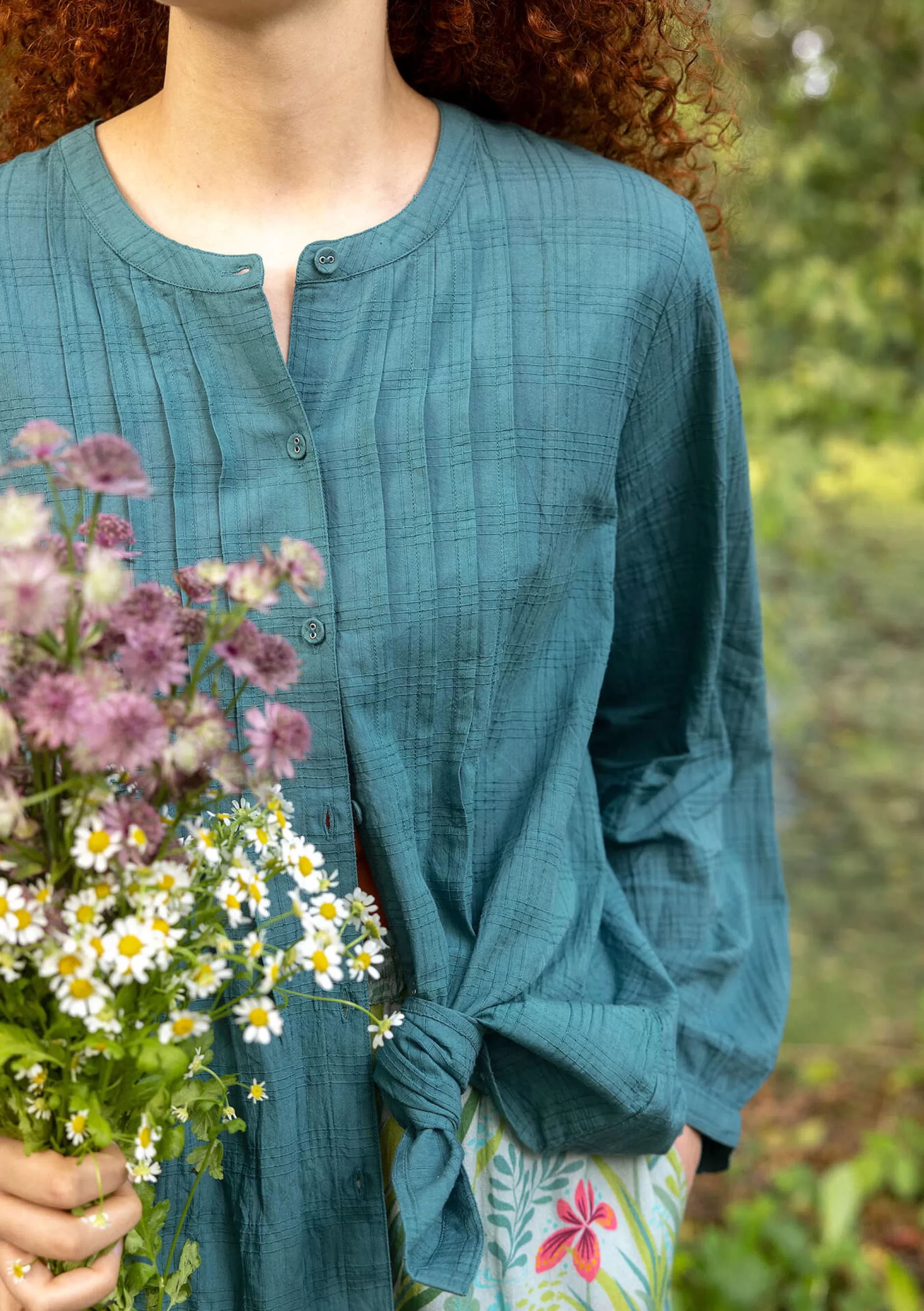 opalgrün S,M,L,XL|Bluse aus einer strukturierten Qualität mit Webkaro. Modell mit Biesen auf Vorder- und Rückenteil sowie abgerundetem Saum. Runder Ausschnitt und Stoffknöpfe.||