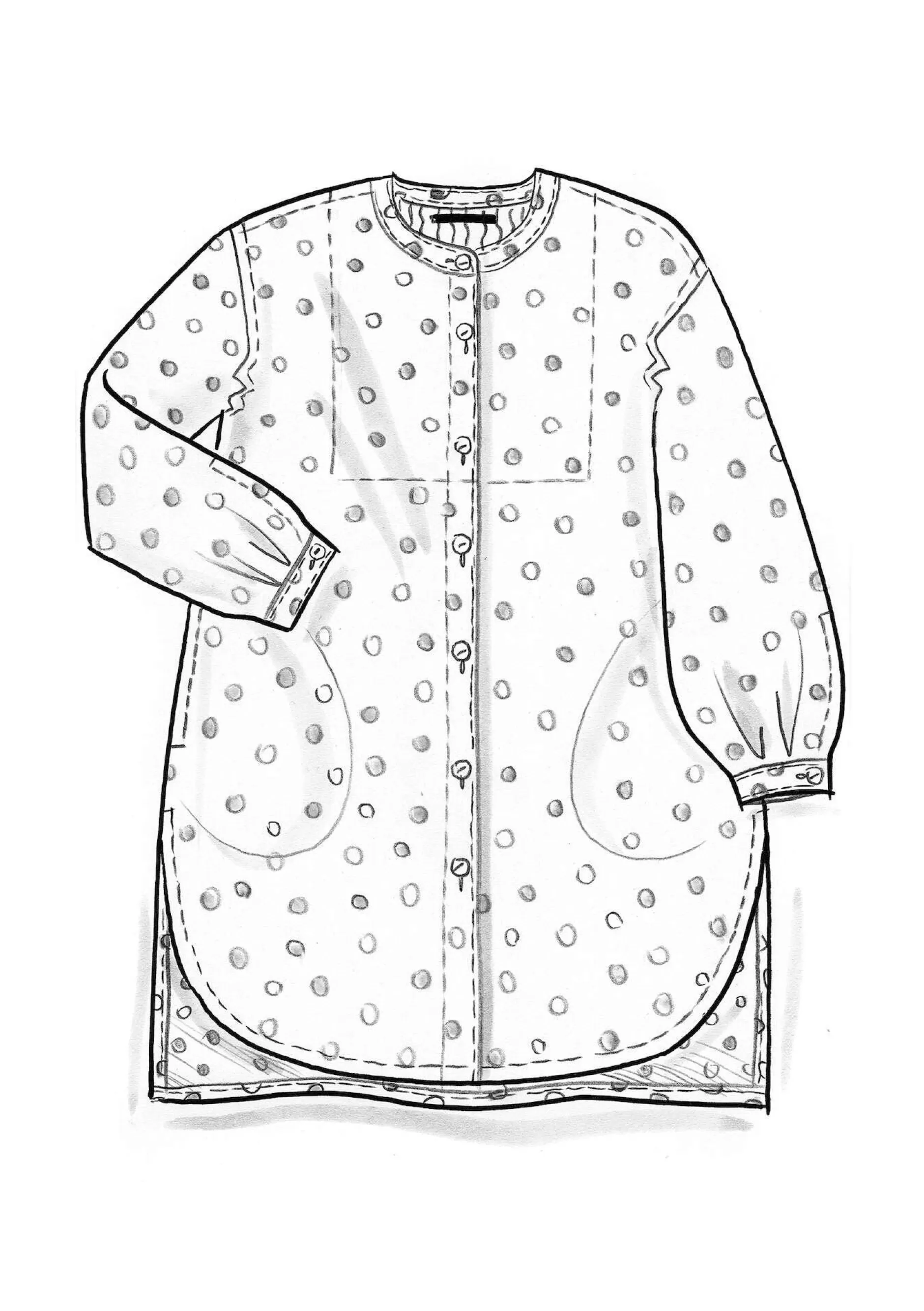 hellgrau S,M,L,XL,XS|Runder Ausschnitt und lange Ärmel. Vorn abgerundeter und hinten gerade gearbeiteter Saum. Musterbild mit Blockdruck-Punkten und -Streifen. Seitliche Taschen.||