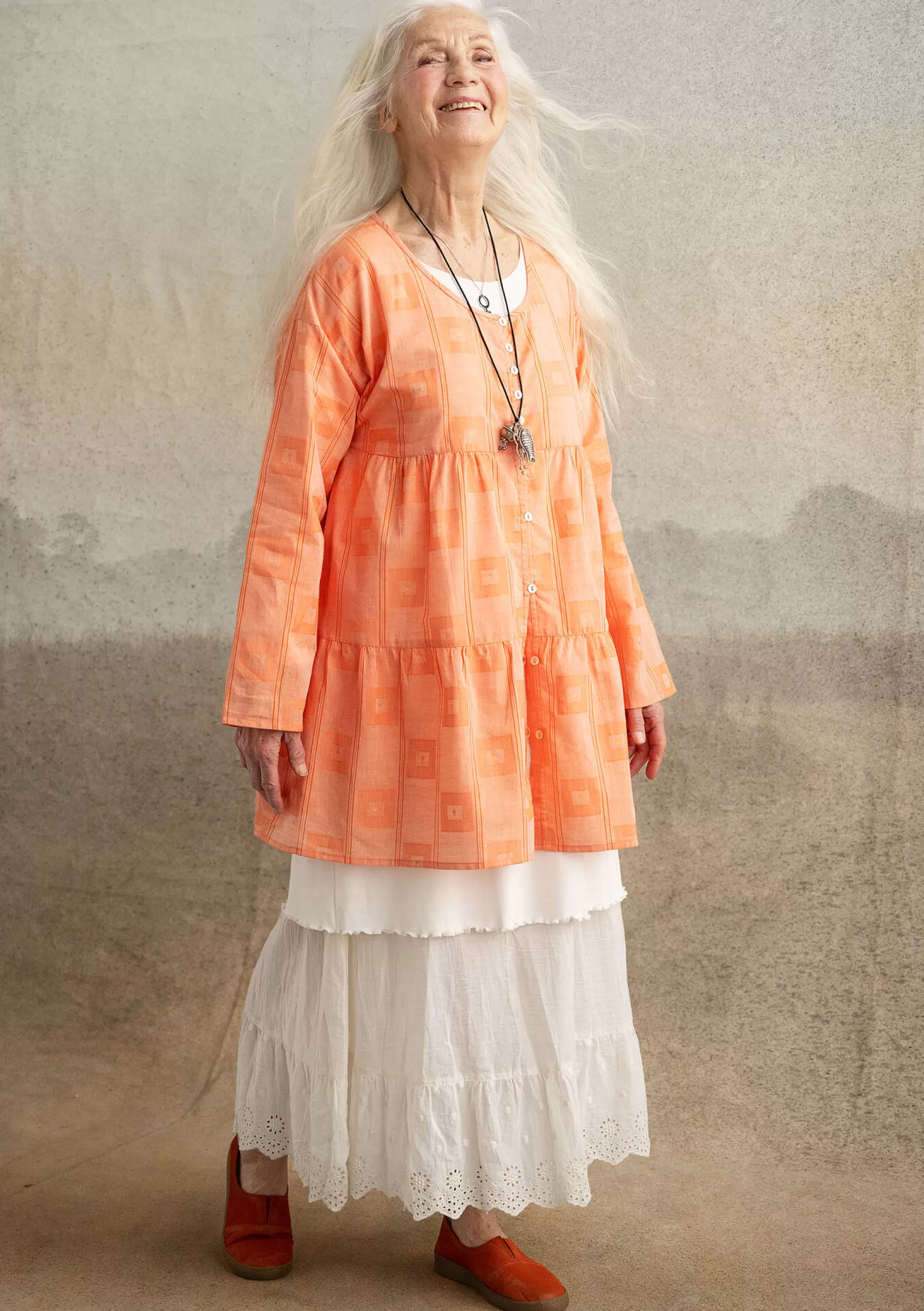 nektar XS,S,M,L,XL|Künstlerbluse mit durchgehender Knopfleiste und Dobby-gewebten Karos, Streifen und feinen Goldfäden. Stufenmodell mit rundem Ausschnitt, Seitentaschen und langen Ärmeln mit Keileinsätzen. Knopfleiste mit Ösen und Perlmuttknöpfen.||