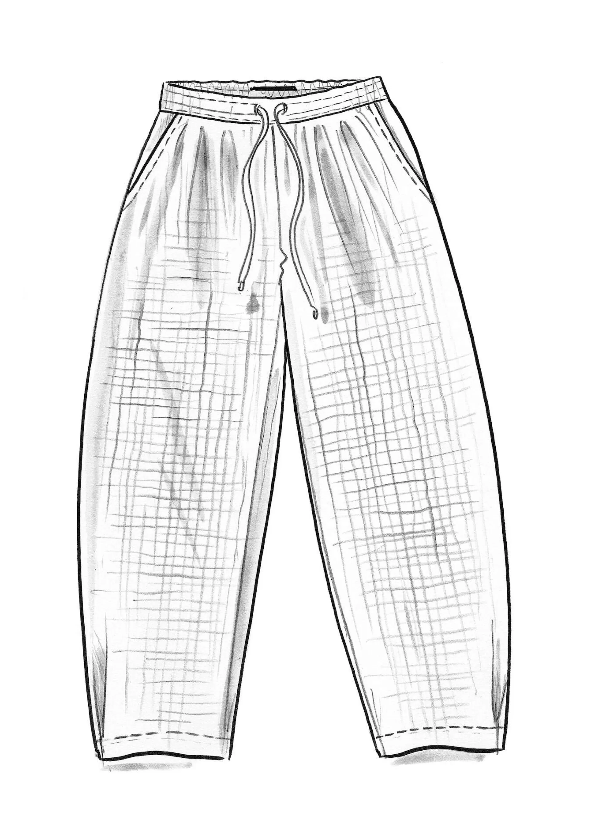 meeresgrün S,M,L,XL,XXL,XS|Weiche Hose aus einem karierten Doppelgewebe mit verschiedenfarbiger Innen- und Außenseite. Modell mit leicht pludriger Form. Seitentaschen und Dehnbund mit Tunnelzug. ||