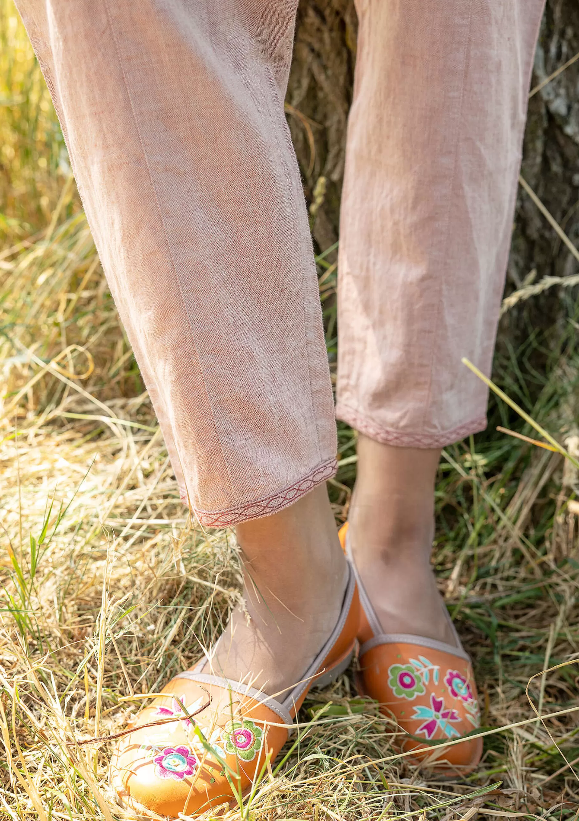 dunkelrosa S,M,L,XL,XXL|Knöchellange Hose aus wunderbar in der Farbe changierendem Chambray. Modell mit Dehnbund, Münztasche und Stickereien an Taschen und Saum.||